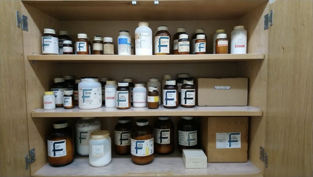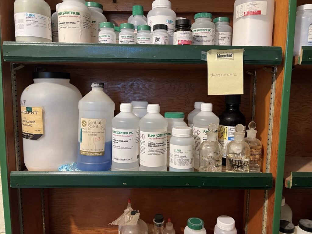 Proper disposal of acids, bases, solvents, and reactive chemicals from chemistry, biology, and physics labs.