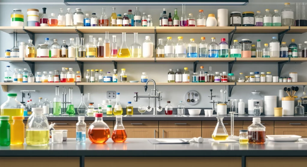 | Lab Chemicals | Acids, bases, solvents, and reactive chemicals from science laboratories |